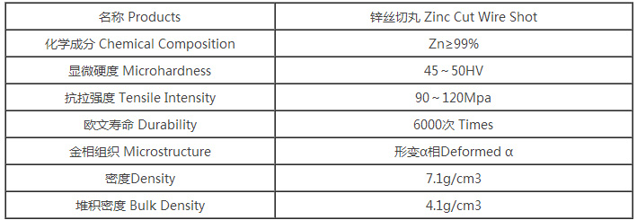 鋅丸:采用拉絲、裁切、磨圓等工藝精制而成,結(jié)構(gòu)緊致,顆粒均勻,外觀銀白光亮。鋅的比重較高,且硬度低,可以在不磨損產(chǎn)品表面的同時去除毛刺,廣泛應(yīng)用于鋁制、鋅制壓鑄件等各種產(chǎn)品的表面噴拋處理。另外,因為與其他丸類相比,粉塵的著火點低,安全性好,并對工件表面有增白效果。